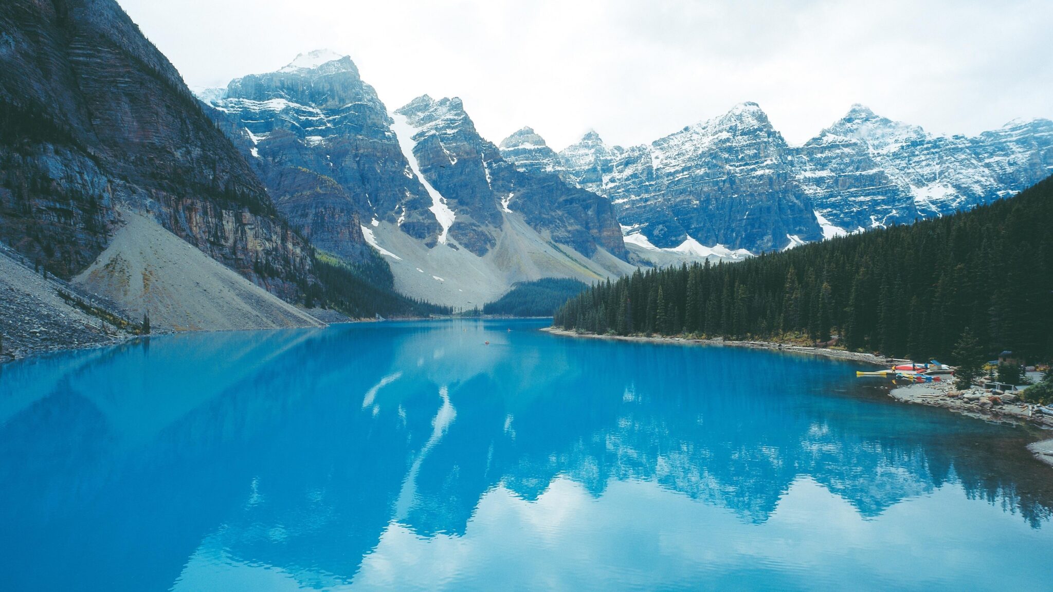 Lake beside mountain with snow Desktop Wallpaper Background HD free download in 2024.