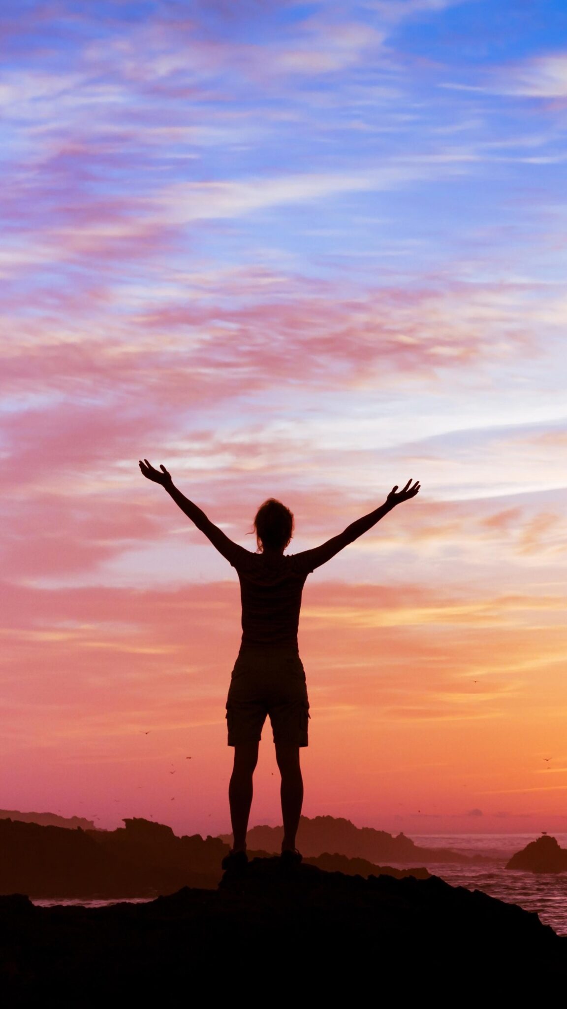 Man holding hands up under red blue sky wallpaper HD free download in 2024.